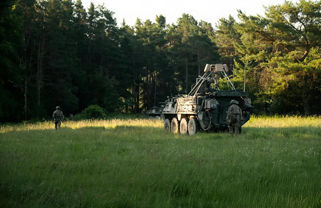 2025年6月20日,美国陆军在德国霍恩费尔斯联合多国战备训练中心举行“捕蝇草计划”联合演习,重点测试在机动条件下的反无人机探测与拦截能力。演习中,第2骑兵团第3中队士兵引导“斯特瑞克”装甲车进入隐蔽阵位,并在车顶部署“回声盾”认知雷达。该雷达能够实时捕捉周边无人机的频率信号,并将精准目标数据推送至地面士兵的终端设备。此次演习由陆军作战能力发展司令部下属C5ISR中心主导,美英双方共同参与。核心目标有两项:其一,验证指挥控制体系在动态战场中的适应性与稳定性;其二,推动反无人机传感器从静态固定阵地向随车机动作战单元转型,从而实现反无人机能力与机动部队的深度融合。