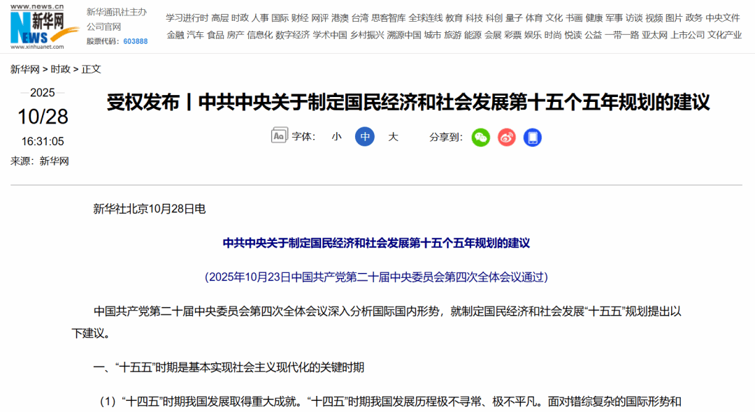 10月24日上午,中共中央举行新闻发布会,介绍并解读四中全会精神。国家发展改革委党组书记、主任郑栅洁在会上表示,《建议》提出打造新兴支柱产业,加快新能源、新材料、航空航天、低空经济等战略性新兴产业集群发展,预计将催生数个万亿元级甚至更大规模的市场。同时,《建议》还提出前瞻布局未来产业,推动量子科技、生物制造、氢能与核聚变、脑机接口、具身智能、第六代移动通信等成为新的经济增长点。这些产业正在蓄势待发,未来十年有望“再造一个中国高技术产业”。